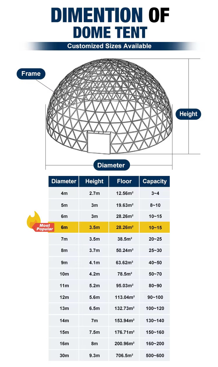 PVC Geodetic Dome for Camping Glimpsing Resorts by Campdome CT-01 Price range: $1,458.00 through $3,279.00